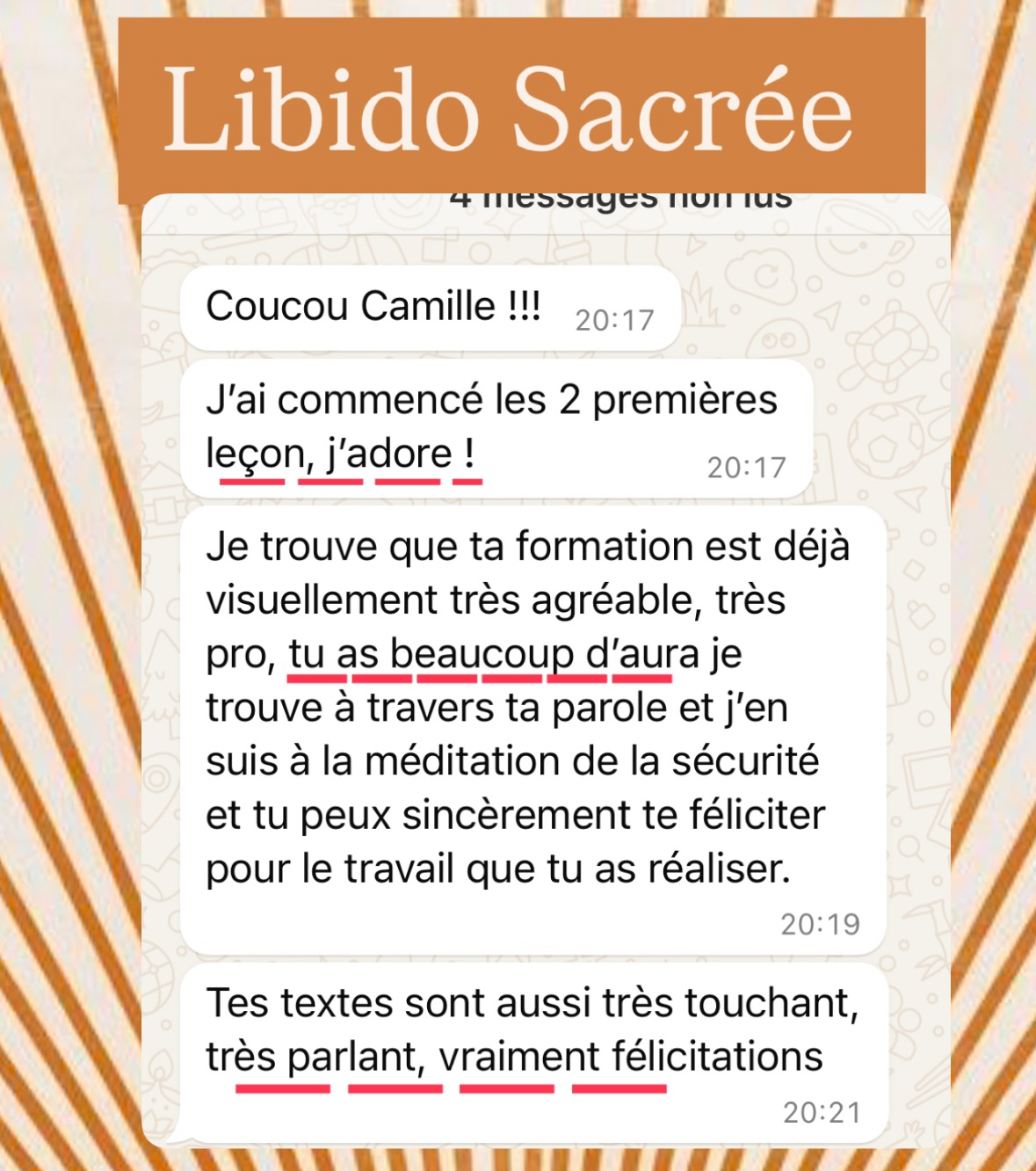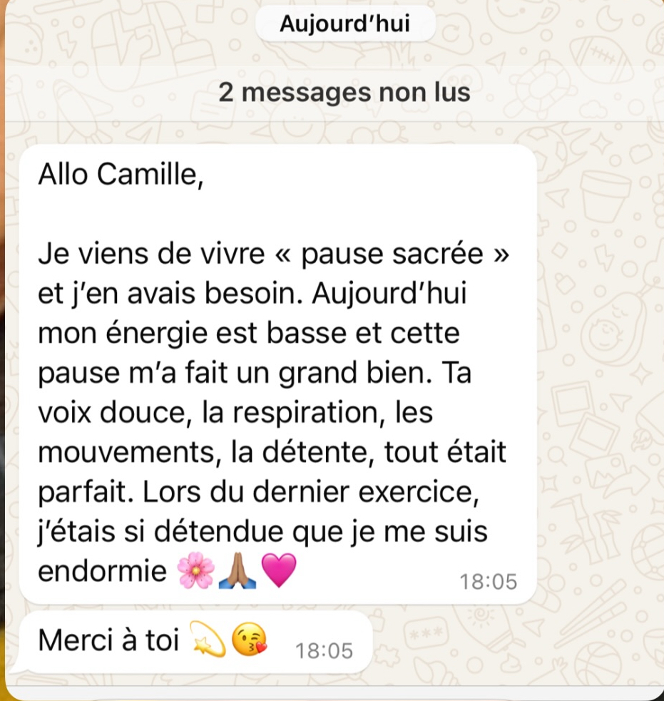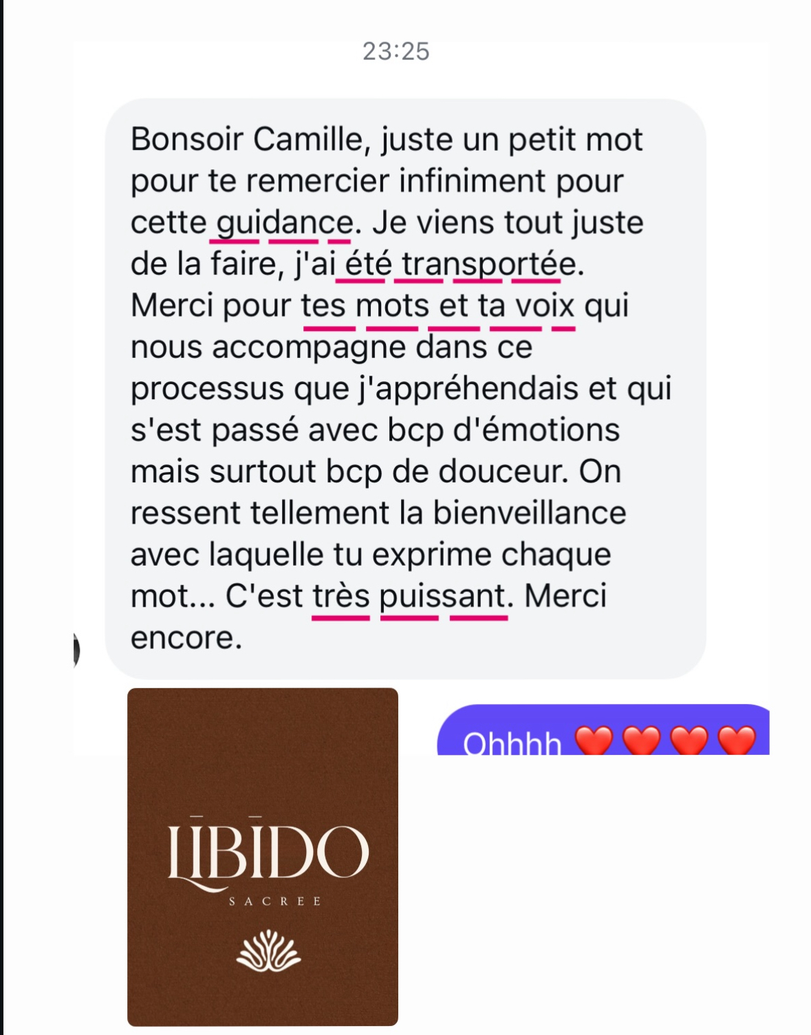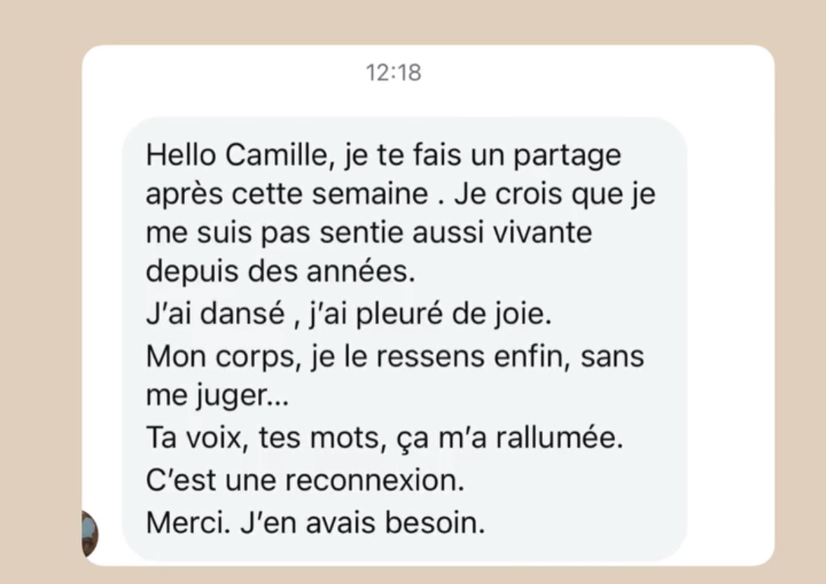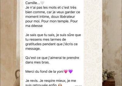 Les échanges sont profonds et sincères, l’écoute de Camille est incroyable et je souhaite à toutes les femmes de rencontrer Camille qui saura les faire briller comme elles le méritent !